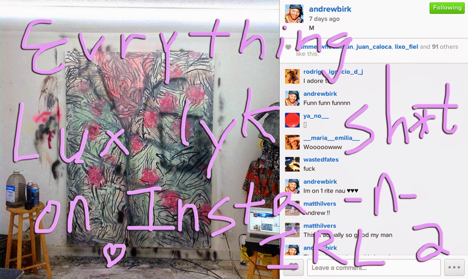 | thats me skyping w my bff Adam thats my painting in the background its of an ass |