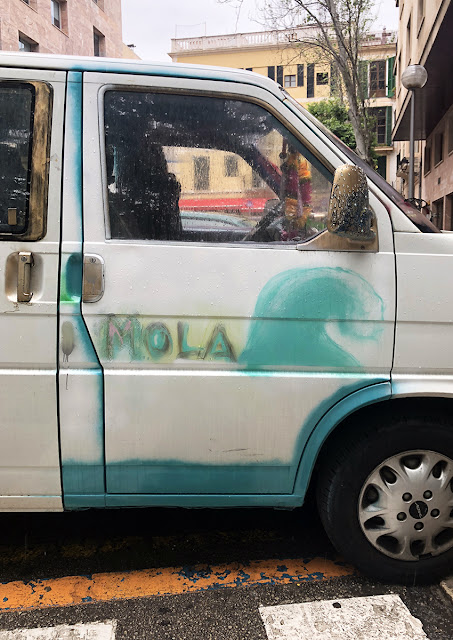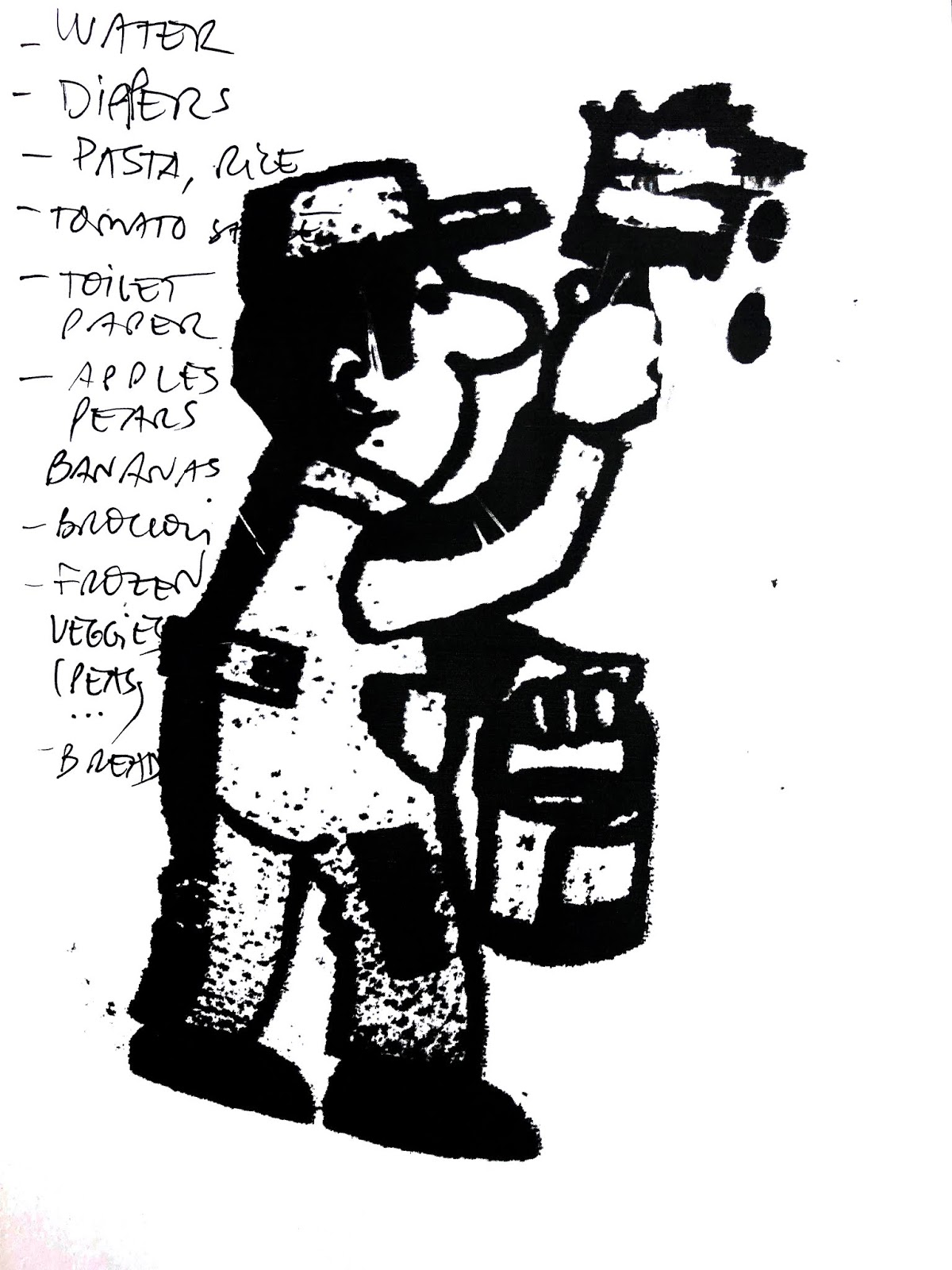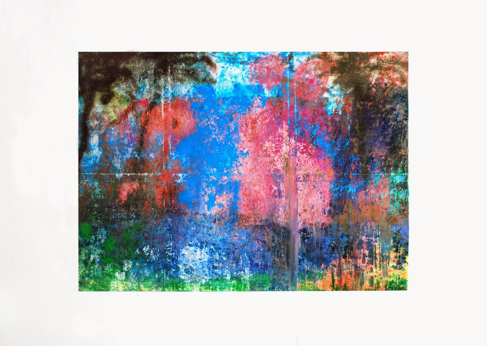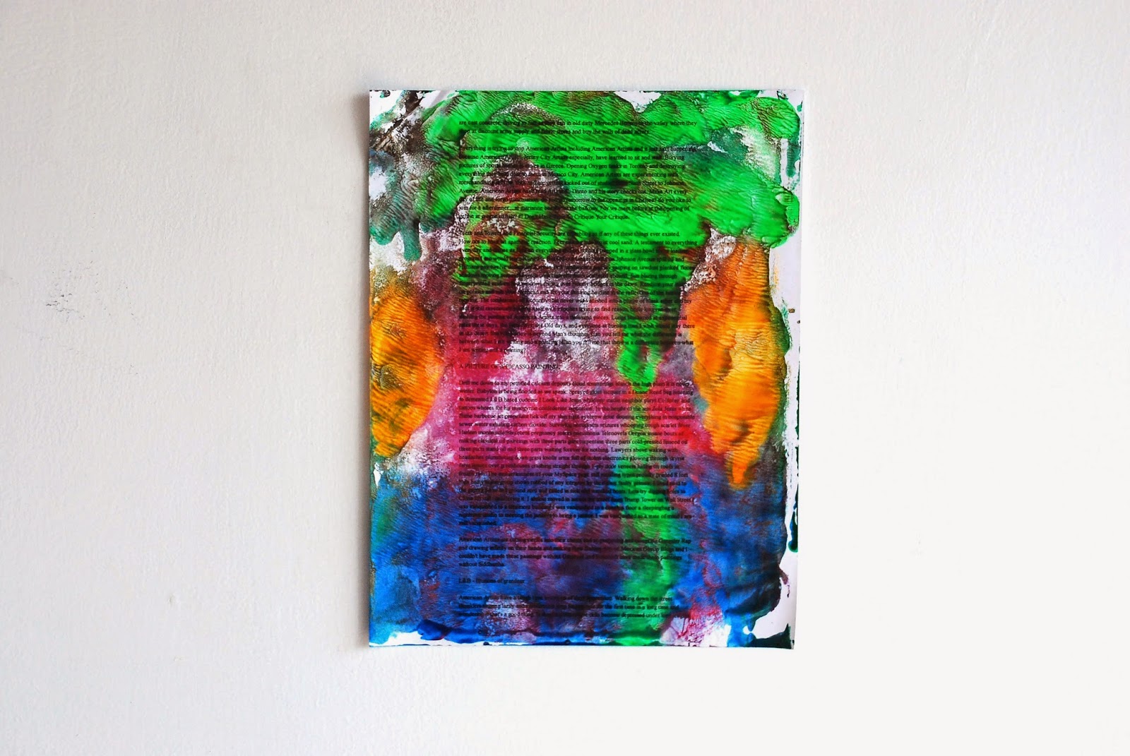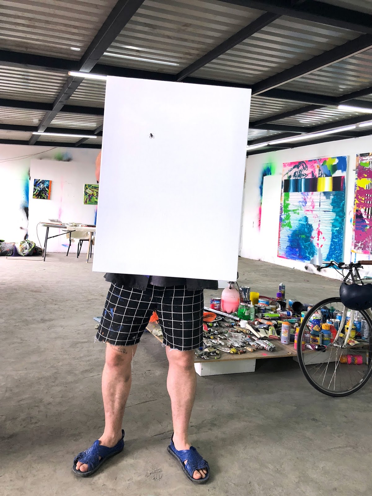 I live in a five hundred person town in the countryside in Spain and I can't drive. I spend all day, every day making watercolours now. These days I only leave my house to find new fragments to use. Im "going to buy bread", but really I’m hunting for shapes, colours, solutions, some stupid any-thing to juxtapose against something else, on top, under. I look for the perfect twisted old olive tree whose form converts into the abstract shape that will solve a painting. The SpongeBob Square pants mesh baby visor suction cupped to the inside of a minivan window. I had an orgasm the other day and precisely at that moment an image of a fluffy sheep exploded into my head and I ran to paint the sheep, solving a problem.