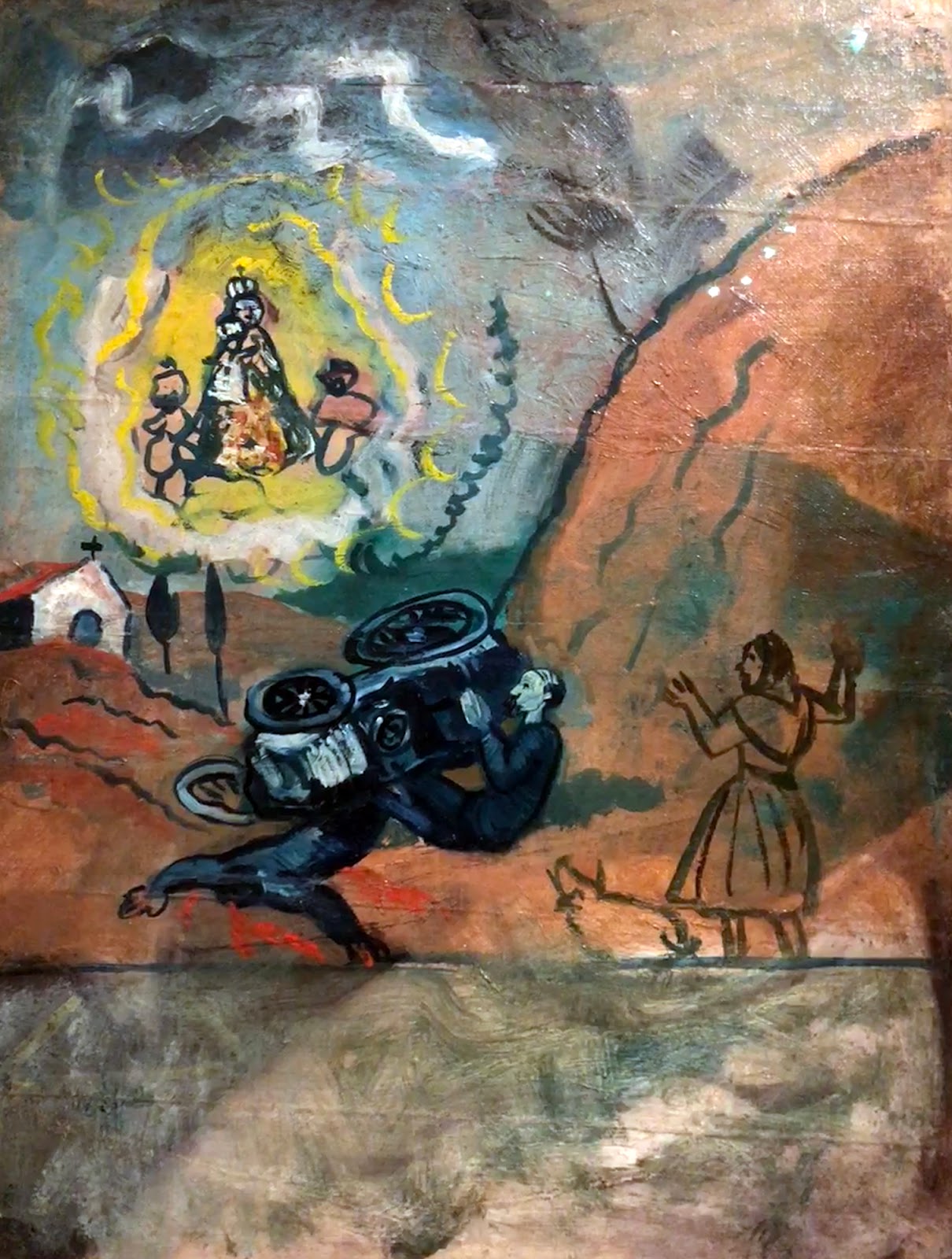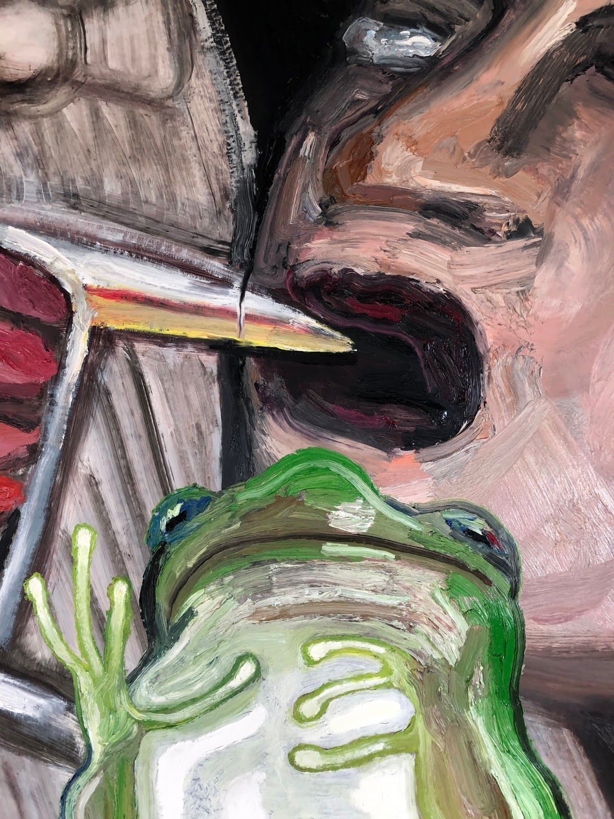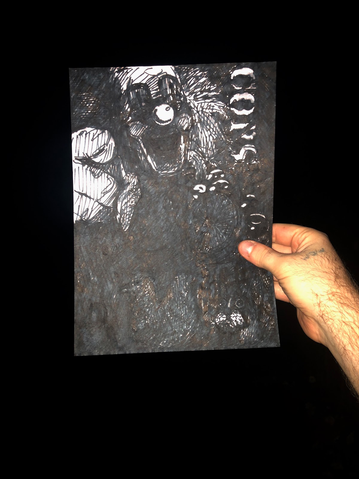 Clown is on the outside of all systems looking in. He is obsessed with art, his own. The space where his labour and life unfolds is precisely the place of leisure for others, they do for fun what he can only ever do, thus, he only relates other humans inside a microscopic sliver of shared social space. He dies on a beach, laying next to people rubbing bronzer into their legs, doing nothing. For him, every-thing seems to be lost in translation, he is floating above or below, but never among. So he carries on working, there is nothing else, practicing, inventing, expanding, loosening and sharpening; end-less production, yet, he is perhaps ultimately his only audience. Art is his only place. His only gear. He doesn’t need Catholicism or Protestantism, Art is God, too.