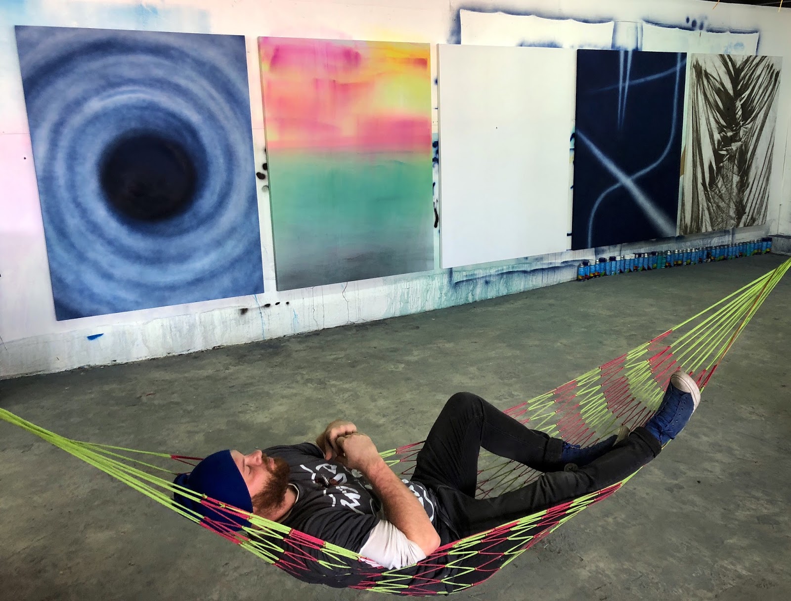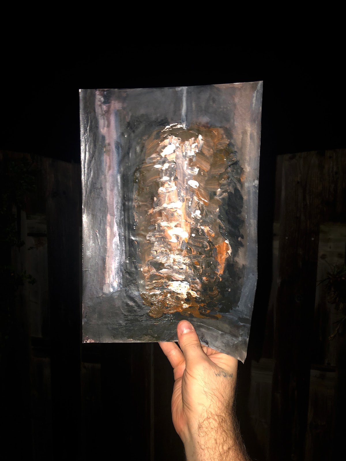 I make these things because I have no better to deal with the anxiety of wanting to be great at something, with a blue collared obsession to be productive, with the fools errand of progress, with the confusion of not being able to contribute to my family in any more pragmatic way, being born with a workers body and a poets heart, with the hope I will drag something back from the bottom of the water that will change me and us. I live inside my mind, inside future hypotheticals, inside perhaps childlike dreams, textures, smells. They are the dreams Ive organized my reality around and fight to protect at all costs, as ridiculous as it may be. Somehow there is a connection between making these paintings and the future, as if while making them Im time traveling. They are sketches for the future. I have always felt this way about my work.