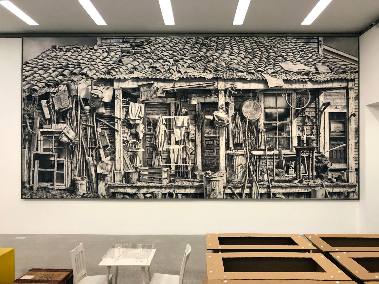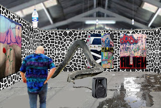 In same cases I wish the paintings had their own space, like the blue swirly abstract one with Peter from The Family Guy hung over the Tyvek bag. Surprises are important in life, even if they are disappointing and/or not what we expect. We have to protect the potential to be surprised at all costs.