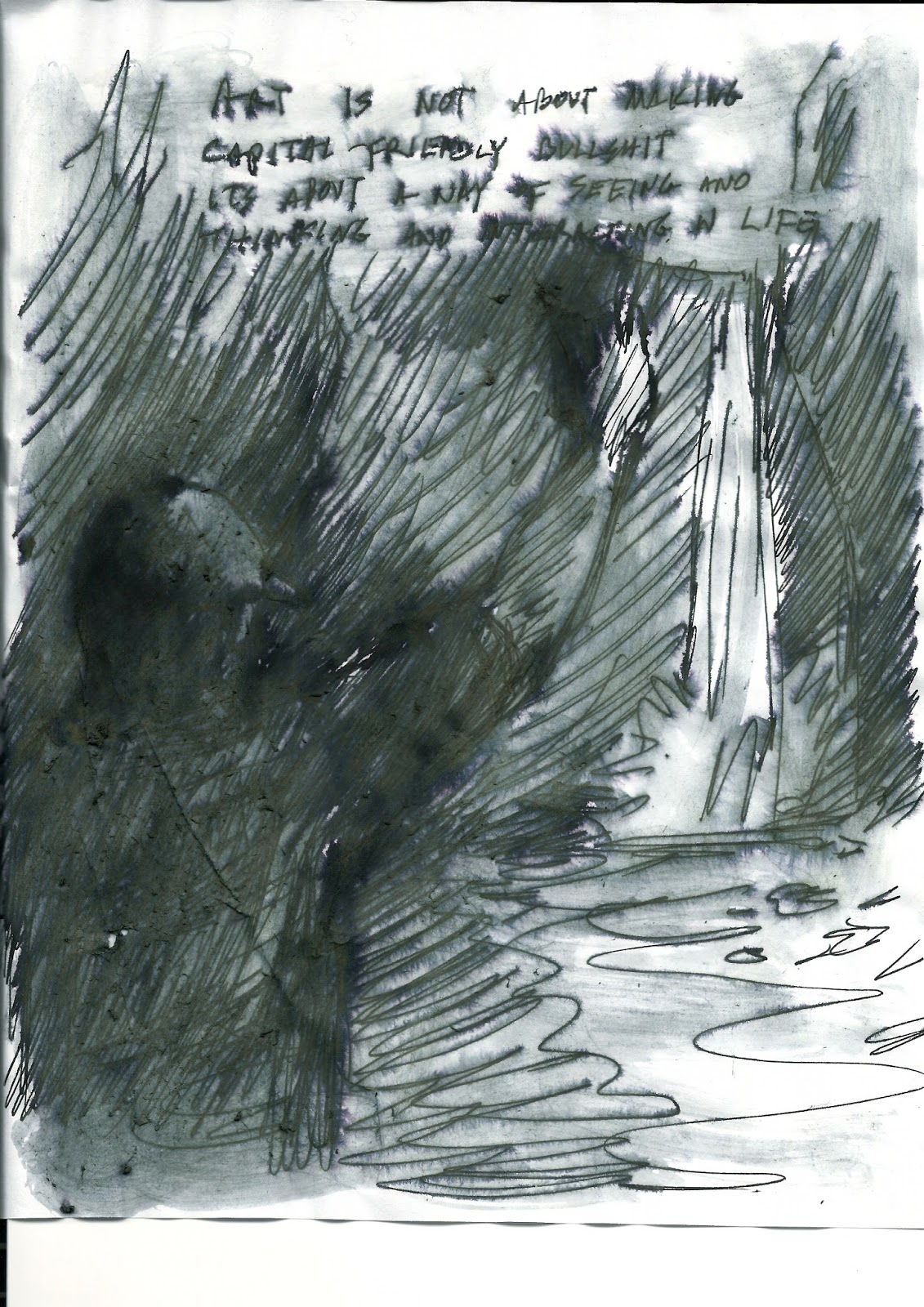 | EVENTUALLY MY WORK IS GOING TO BE ABOUT THE ACT OF WALKING THROUGH FORESTS IT IS WORTH NOTING THAT THE RELATIONSHIP BETWEEN ME AND THE SPACE THAT I AM IN = ART |