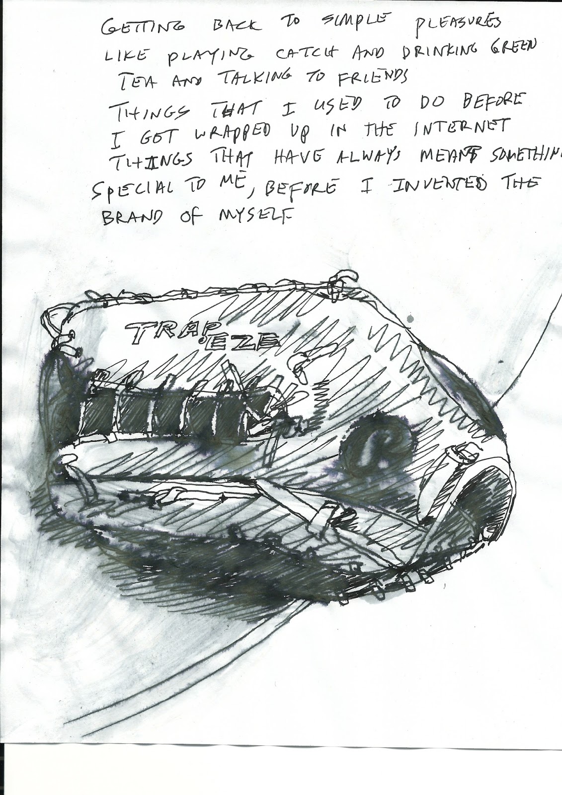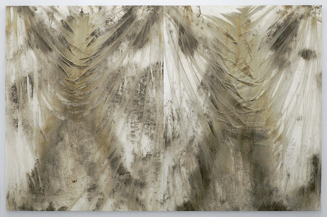 I make these things because I have no better to deal with the anxiety of wanting to be great at something, with a blue collared obsession to be productive, with the fools errand of progress, with the confusion of not being able to contribute to my family in any more pragmatic way, being born with a workers body and a poets heart, with the hope I will drag something back from the bottom of the water that will change me and us. I live inside my mind, inside future hypotheticals, inside perhaps childlike dreams, textures, smells. They are the dreams Ive organized my reality around and fight to protect at all costs, as ridiculous as it may be. Somehow there is a connection between making these paintings and the future, as if while making them Im time traveling. They are sketches for the future. I have always felt this way about my work.