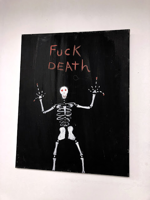In same cases I wish the paintings had their own space, like the blue swirly abstract one with Peter from The Family Guy hung over the Tyvek bag. Surprises are important in life, even if they are disappointing and/or not what we expect. We have to protect the potential to be surprised at all costs.