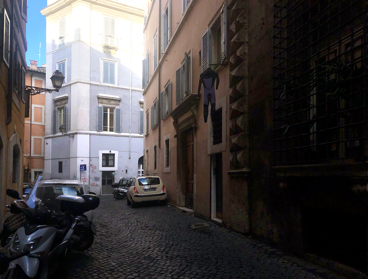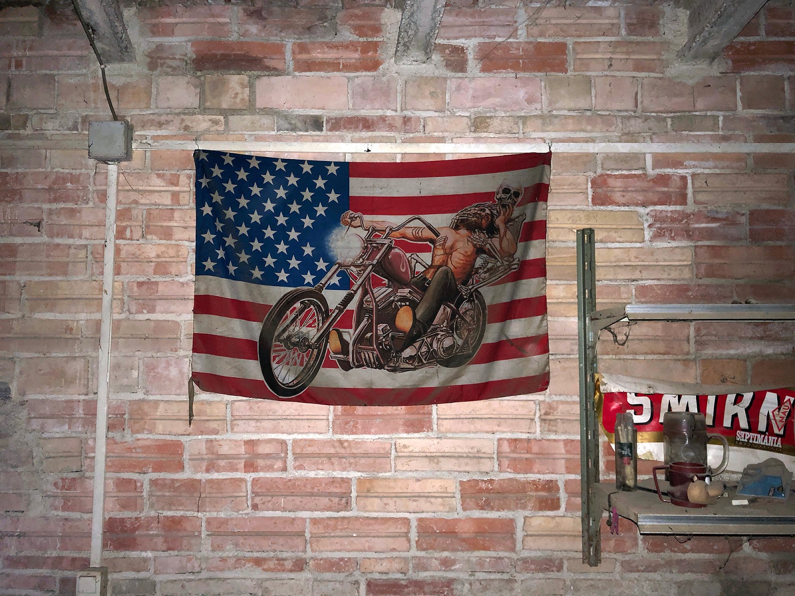 | Do you see that underwear hanging from the piping? |